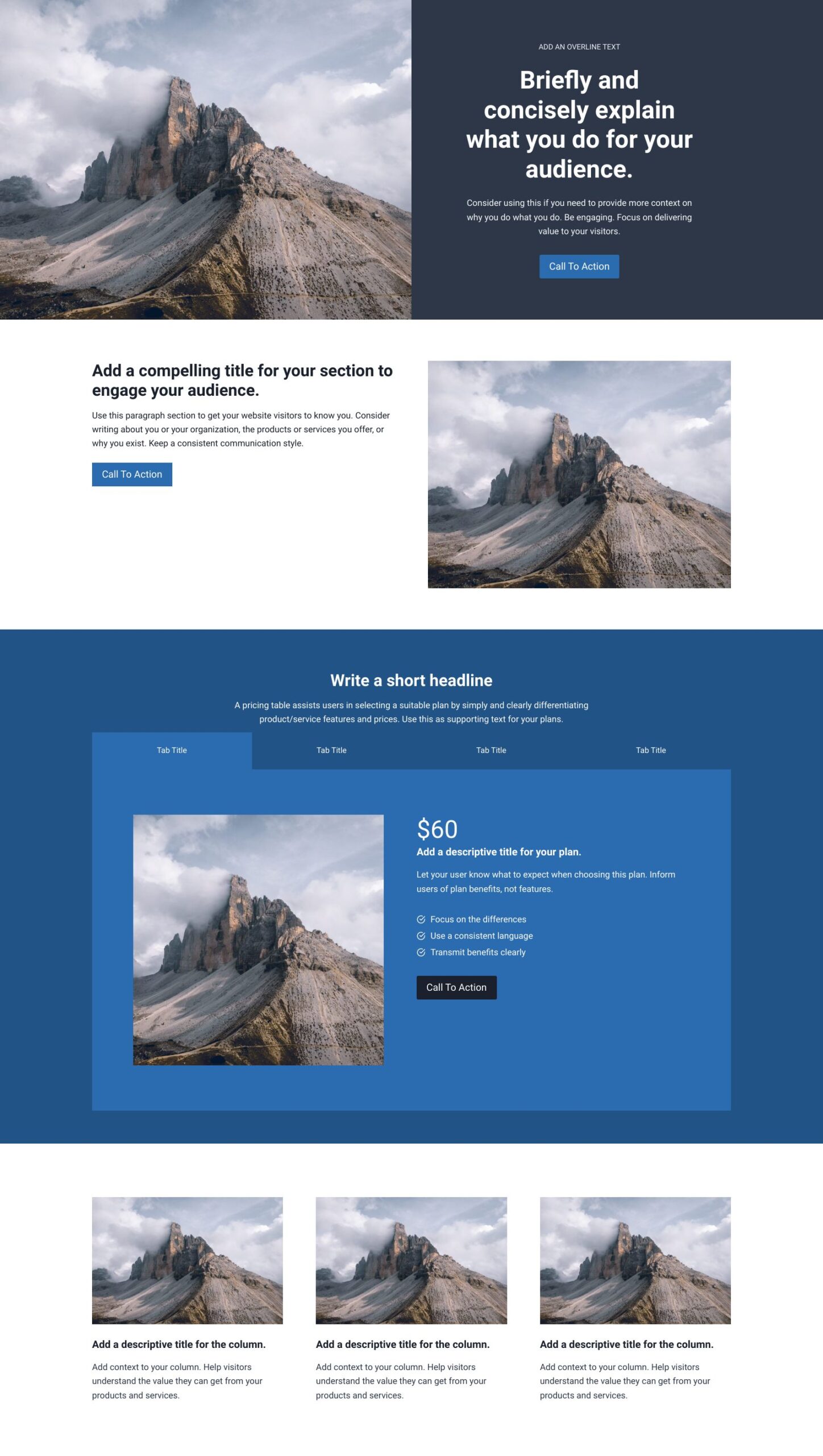 1. Pre-Designed Templates and Sections: We provide an array of ready-to-use page layouts and sections. Whether you need designs for homepages, contact pages, or anything in between, our library has a variety of options that can be imported directly into your site.