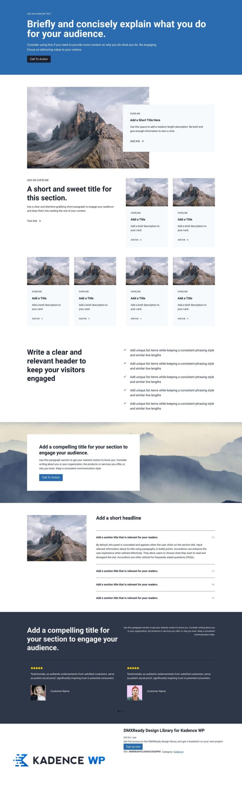 DMXReady’s design library is specifically tailored for Kadence WP, a renowned WordPress theme celebrated for its adaptability and ease of use. Our aim at DMXReady is to equip you with all the necessary tools and resources to build an attractive, effective, and efficient website using WordPress, Woocommerce, and Kadence WP. See Live Preview.